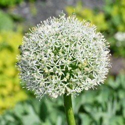 The white spherical flowers on tall stems are followed by decorative seed pods that remain attractive for a long time after flowering.