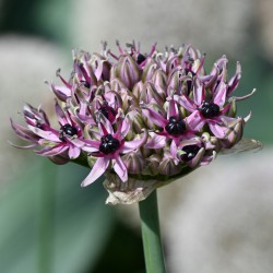 A recently introduced, medium-high Allium with semi-spherical umbels. The flowers open violet-pink and glow to pinkish white with strikingly dark fruiting petals. Beautiful for midway in the flower bed.