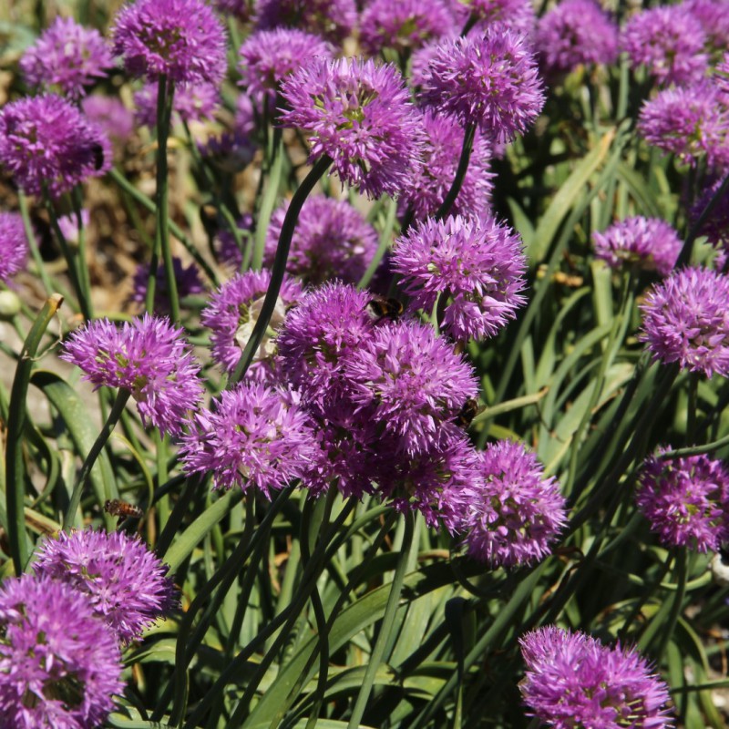Strong flower stalk with a spherical inflorescence of about 3 cm, which is densely covered with dark pink, scented flowers.
