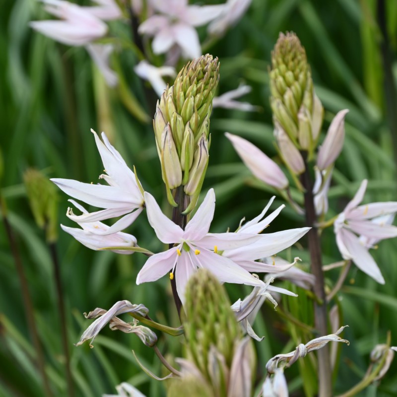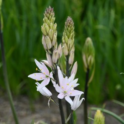 Prairie lily, suitable for the perennial border and for planting under trees and shrubs. A selection with beautiful, soft pink, star-shaped flowers in upright spikes.