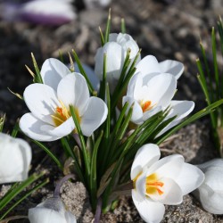 White autumn crocus, the flowers and leaves appear simultaneously. Striking are the three bright red stigmas.