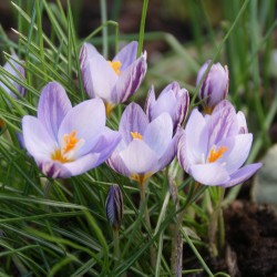 Small flowering crocus, golden yellow with purple stripes. Flowering time: February-March. Height 10-15 cm.
