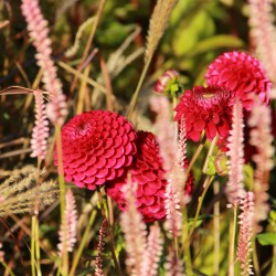 Excellent red dahlia with rather small flowers, height 120 cm., very good for cutting and also a plural prize winner, flower size 9 cm.