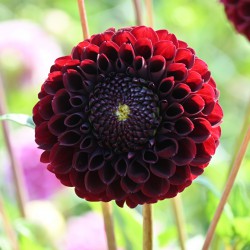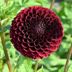 Fully filled, deep black-red, spherical flowers. Flower size 9 cm. Very suitable as a cut flower.