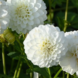 Fully filled, spherical flowers, white. Flower size 9 cm. Very suitable as a cut flower.