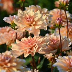 Waterlily-type. Soft orange with white tops, flower size 10 cm.