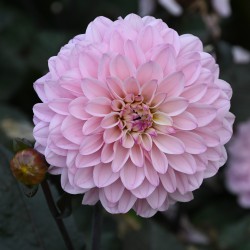 Decorative type flowers, pale lilac with a creamy white centre. The combination with the purple brown foliage is striking, height 50 cm., flower size 12 cm.