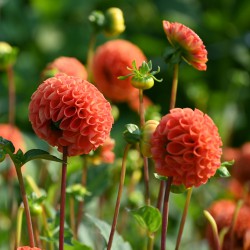 Pompondahlia, warm orange flowers on a yellow base. Flower size 5.5 cm. ORGANICALLY CULTIVATED.
