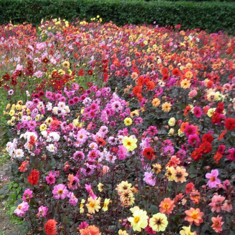 Cheerful mix of single-flowered dahlias, many with dark foliage. ORGANICALLY GROWN.