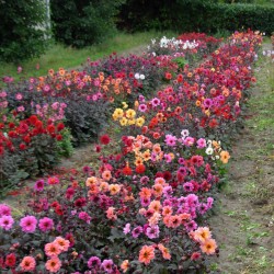 Cheerful mix of single-flowered dahlias, many with dark foliage. ORGANICALLY GROWN.