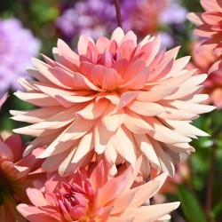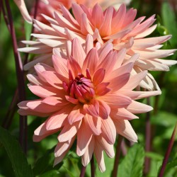 Decorative dahlia, salmon pink. Flower size 13 cm.