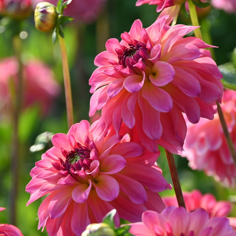 Decorative dahlia, candy pink with a light yellow centre. Flower size 12-15 cm.
