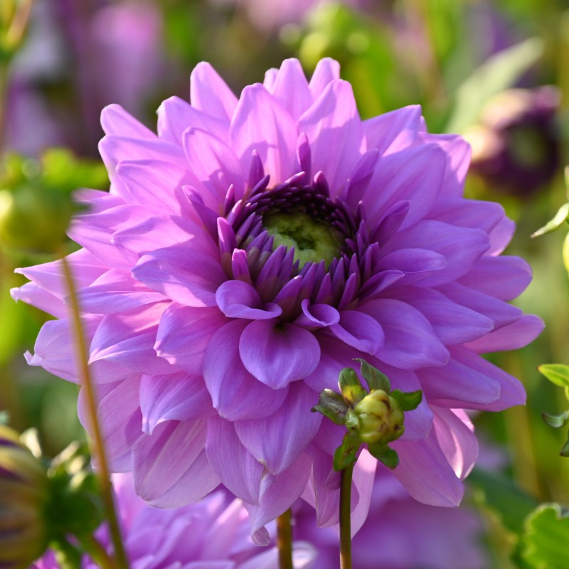 Decorative dahlia, lilac-purple flowers. Flower size 12 cm.