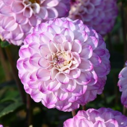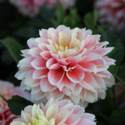 Decorative Dahlia with beautifully shaped, relatively small, soft pink flowers. Flower size: 10 cm. ORGANICALLY GROWN.