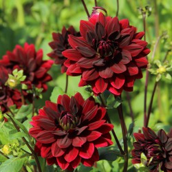 Decorative dahlia, deep red flowers, blackish red at the centre. Flower size 15 cm.