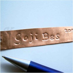Sustainable plant labels made of copper with a copper wire, which you can use to hang them on a plant or shrub. You can write on the labels with a regular pen. This is actually engraving. The text will still be legible even after years. But you can also use a marker pen, of course.