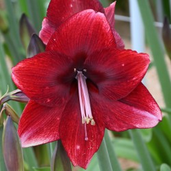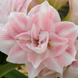 Special color, lilac pink with a subtle white stripe. Trumpet Group. Plant the bulb halfway into the soil. Use a large pot with a drainage hole. For development of the stem, warmth is especially important, therefore it is best to keep it at room temperature. Needs little water until the stem emerges. Once the bud and the leaf appears, the amaryllis needs to be watered daily. In winter, it takes about 6 to 10 weeks after potting up before it comes into bloom.
