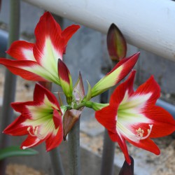 Wine-red with a white center, shows a nice contrast. Plant the bulb halfway into the soil. Use a large pot with a drainage hole. For development of the stem, warmth is especially important, therefore it is best to keep it at room temperature. Needs little water until the stem emerges. Once the bud and the leaf appears, the amaryllis needs to be watered daily. In winter, it takes about 6 to 10 weeks after potting up before it comes into bloom.