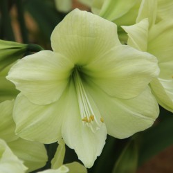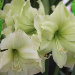 Greenish yellow, flower 21 cm. Diamond Group. Plant the bulb halfway into the soil. Use a large pot with a drainage hole. For development of the stem, warmth is especially important, therefore it is best to keep it at room temperature. Needs little water until the stem emerges. Once the bud and the leaf appears, the amaryllis needs to be watered daily. In winter, it takes about 6 to 10 weeks after potting up before it comes into bloom.