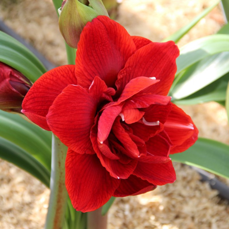 Plant the bulb halfway into the soil. Use a large pot with a drainage hole. For development of the stem, warmth is especially important, therefore it is best to keep it at room temperature. Needs little water until the stem emerges. Once the bud and the leaf appears, the amaryllis needs to be watered daily. In winter, it takes about 6 to 10 weeks after potting up before it comes into bloom.