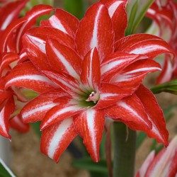 White with red spots. Galaxy Group. Plant the bulb halfway into the soil. Use a large pot with a drainage hole. For development of the stem, warmth is especially important, therefore it is best to keep it at room temperature. Needs little water until the stem emerges. Once the bud and the leaf appears, the amaryllis needs to be watered daily. In winter, it takes about 6 to 10 weeks after potting up before it comes into bloom.