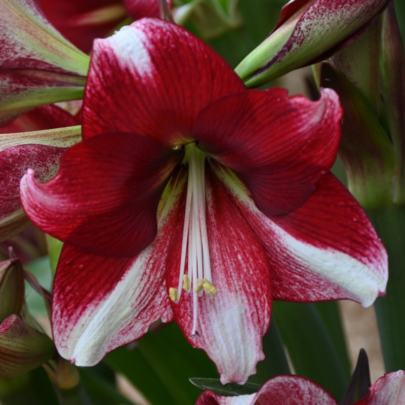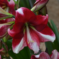 Multi-coloured, red, change to pink and creamy white. Speckled in pink and white. Galaxy Group. Plant the bulb halfway into the soil. Use a large pot with a drainage hole. For development of the stem, warmth is especially important, therefore it is best to keep it at room temperature. Needs little water until the stem emerges. Once the bud and the leaf appears, the amaryllis needs to be watered daily. In winter, it takes about 6 to 10 weeks after potting up before it comes into bloom.