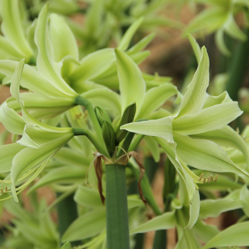 Very beautiful green Hippeastrum, rich flowering. Cybister, Spider Group.