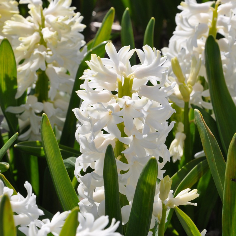 Single-flowered Hyacinth, for in the garden. Flowering time: April-May. White.