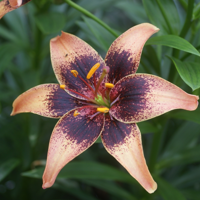 Orange brown, “airbrushed” much darker at the middle , height 80-90 cm.