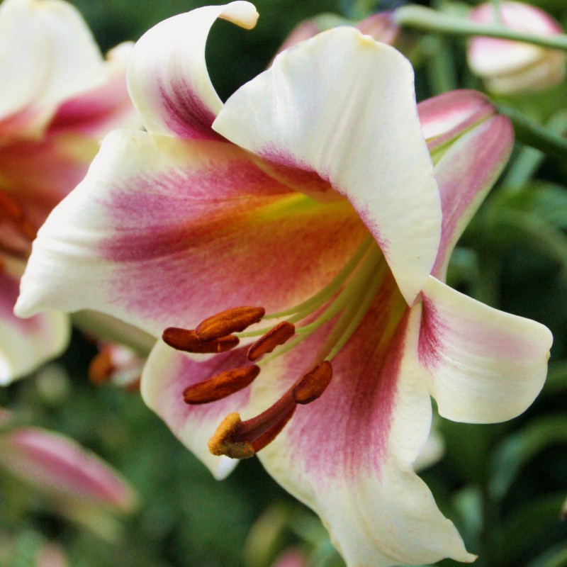 Tree lilie, creamy yellow flowers, dark pink inside. A cross between Oriental lilies and Trumpet lilies. This has produced quite high, but firm lilies, usually with slightly downwards, large, fragrant flowers. Despite the height, the lilies remain upright, so they are perfectly suited for the garden.