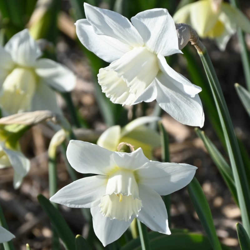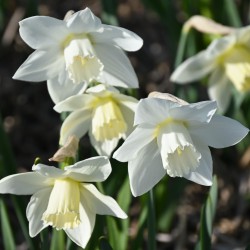 Beautiful white daffodil with a slender crown, initially lime green at the base.
