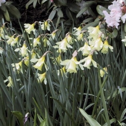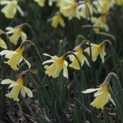 A miniature daffodil for the first time listed in 1884, sulphur yellow with a pale yellow trumpet. Height 15 cm.