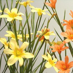 (Syn. Homeria ochroleuca) Cape tulip. Not related to the tulip but one of the many members of the Iridaceae-family. Cup shaped flowers. Not entire hardy, so give them a good groundcover in winter or dig them out in October. Plant the corms in well drained, humus rich soil in full sun. Hardiness zone 9-10. Yellow.