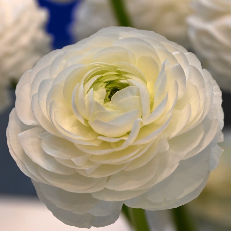 Italian Ranunculus from the ELEGANCE series is characterised by its higher productivity, longer stems and larger, fuller flowers. The colour of Bianco's flowers are initially creamy white with a green centre, later completely white. Soak the tubers before planting. At the time of flowering, water regularly and give extra nutrition. Removing spent flowers encourages continuous flowering.