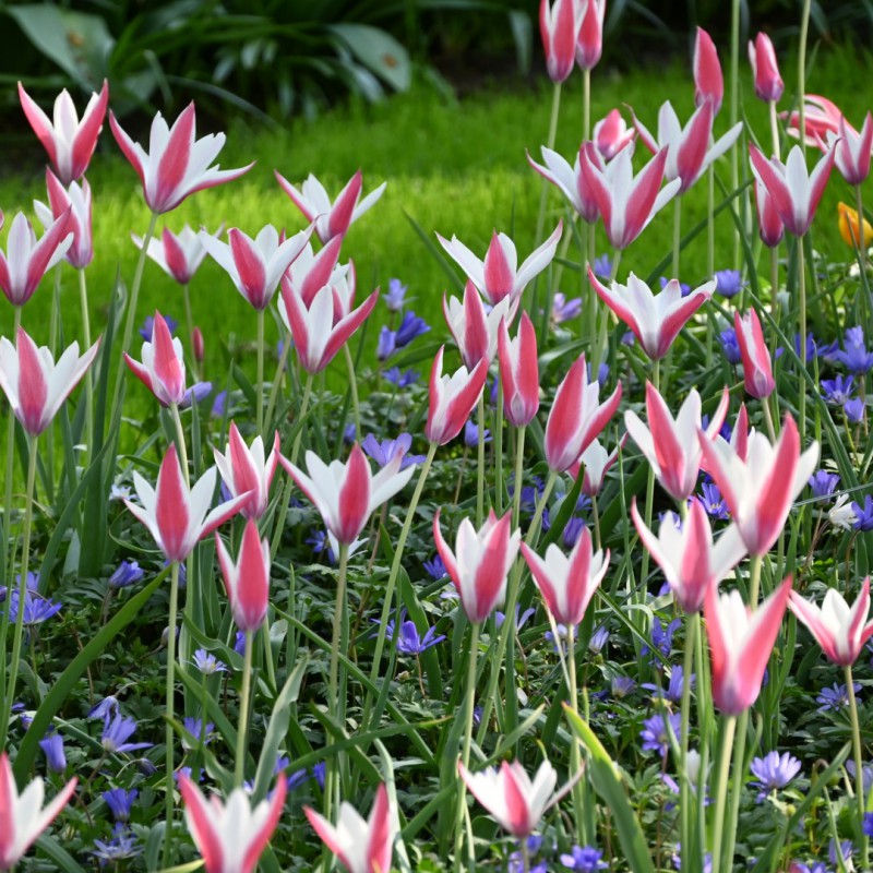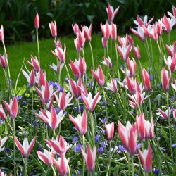 Very similar to T. clusiana. Cerise red flowers with a white border. A big violet-purple heart.