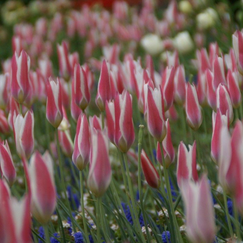 Elegant slim wildtulip, white with a soft pink-red exterior. Height 25 cm.