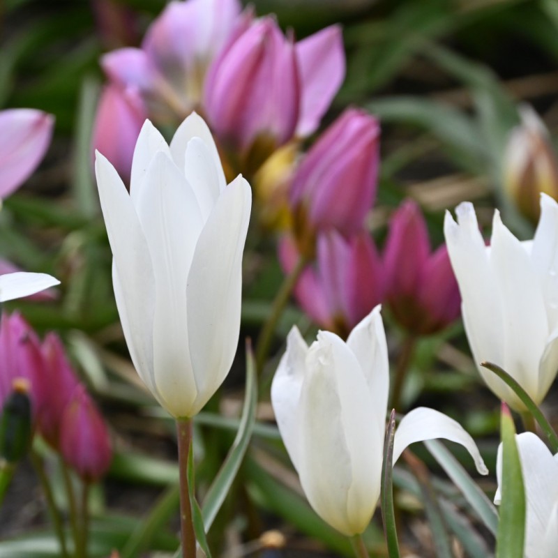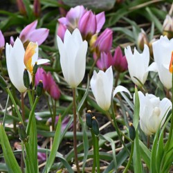 A pure white clusiana tulip. Elegant slender wild tulip, height 20-25 cm.