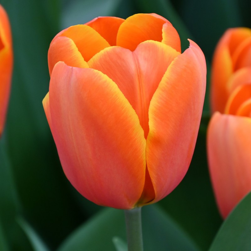 Orange-red with a small yellow edge, beautiful strong tulip.