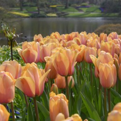 A mutant of T. 'Pink Impression', the soft yellow with soft pink flowers change to warm yellow with apricot pink during flowering.