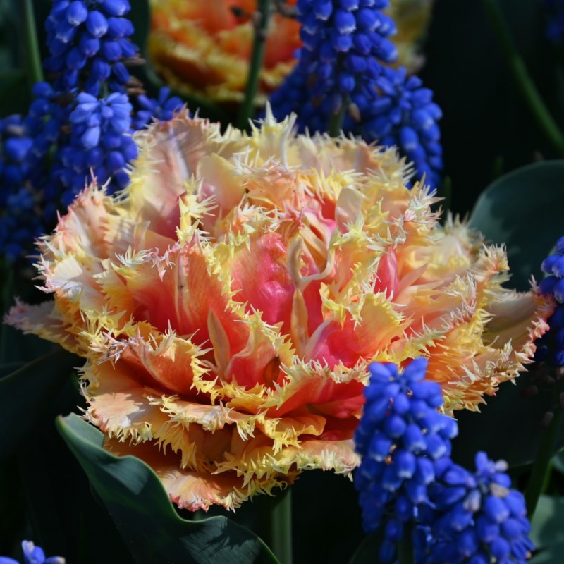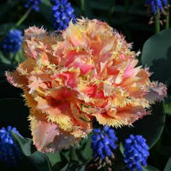 Double-flowered, fringed tulip. Soft apricot orange with yellow.