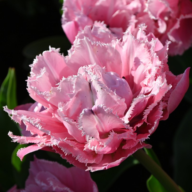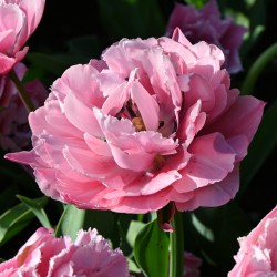Fringed double, sweet-pink flowers. Firm, not too tall tulip.