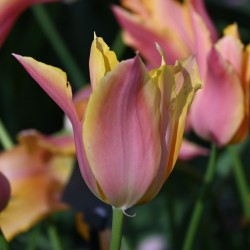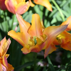 Beautiful lily-flowered tulip, soft orange with warm yellow.