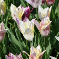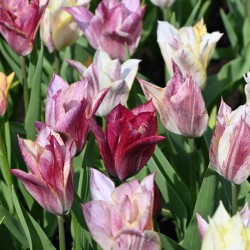 A tulip that changes colour during flowering: soft yellow, multi-coloured, pink and purple hues are common.