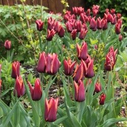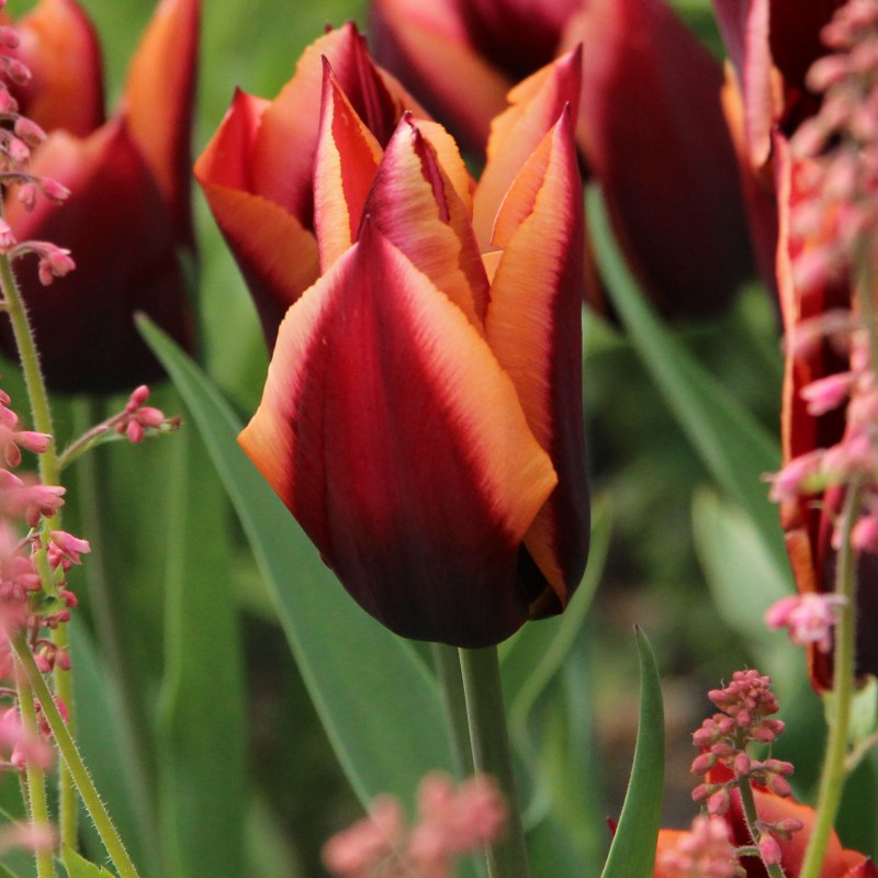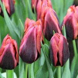 Single flowering tulip, deep red-purple with a large orange-pink edge. Flowering time: April. Height 40 cm.