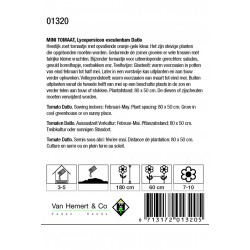 Tomato Datlo. Sowing indoors: Februari-May. Plant spacing: 80 x 50 cm. Grow in cool greenhouse or on sunny place.